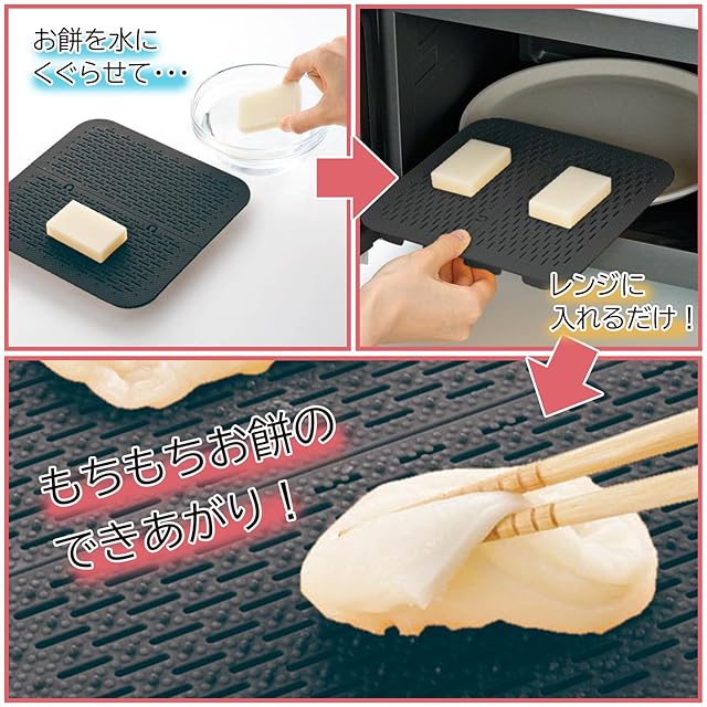 貝印(KAI CORPORATION) 電子レンジ調理器 もちアミ 楽チンプレート ブラック 日本製 電子レンジ対応 しっとり もちもち くっつかない 簡単調理 時短調理 料理 グッズ アイテム レンジ調理 調理器具 台所用品 キッチン用品 04076200