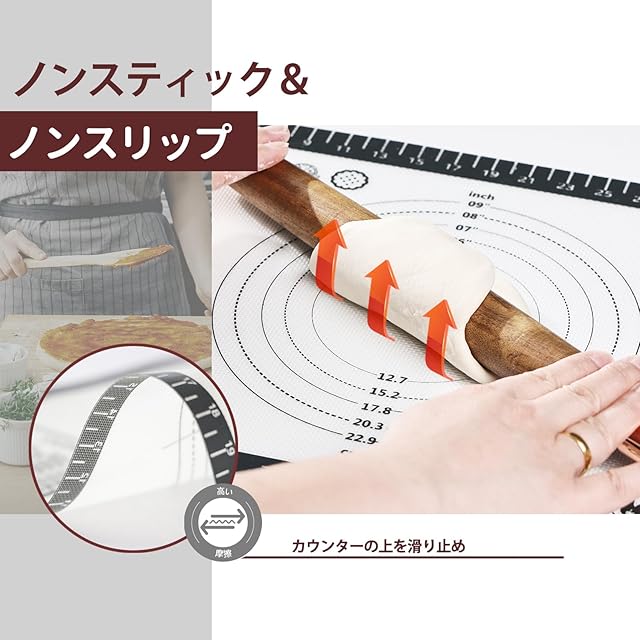 商品名:KITCHENRAKU KRクッキングマット お菓子作り ピュアプラチナシリコーン 調理台保護マット 製菓道具 耐熱 滑り止め 目盛り付き クッキングシート 繰り返し使用可能 洗える 収納便利 まな板 パン作り道具耐熱