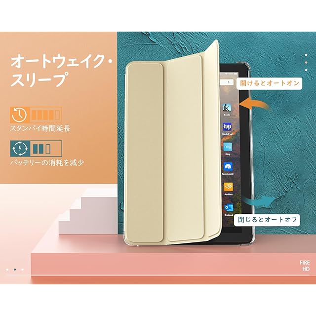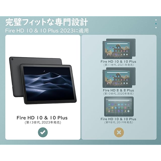 「Fire HD 10/10 PLUS 2023向けの専用デザイン」 2023年新発売のFire HD 10/10PLUS 2023モデル向けに設計した専用スマートカバーとなります。2021年モデル又は他の機種に対応出来ませんので、ご購入前に必ずお手元のタブレットの機種を予めご確認ください。