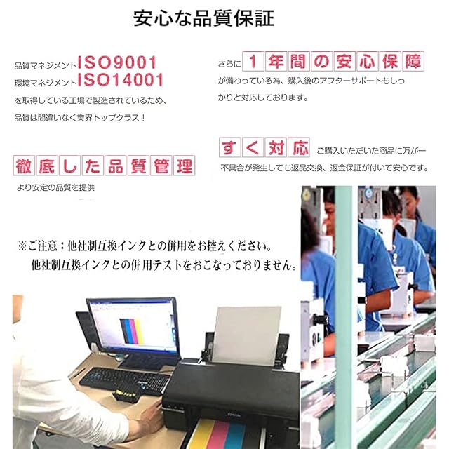 【1年品質100%】国際規格ISO9001、14001認定の工場で製造しております。製品には1年品質を承っております。万一初期不良(破損、インク漏れ、チップ認識不良)や商品に不具合が生じた場合には、速やかに交換、返金にてご対応させて頂きます。