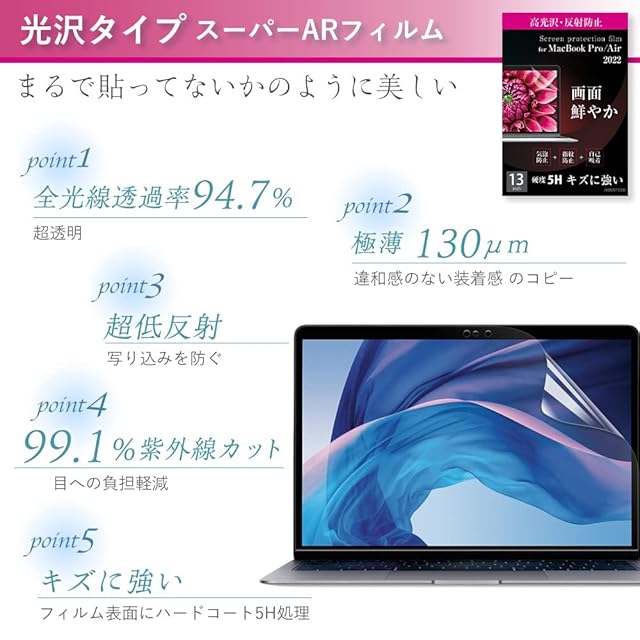 【透明・高光沢】MacBook Pro 14inch M1 保護フィルム 高光沢 反射防止 紫外線カット スーパーARフィルム 液晶 指紋防止 超低反射 気泡軽減 HOGOTECH
