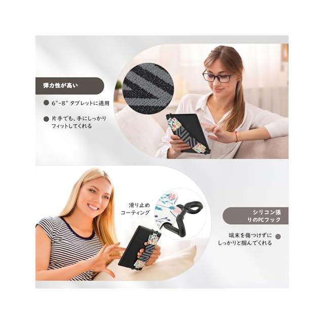 タブレットハンド MoKo 2枚セット タブレットストラップ タブレットゴムバンド 片手持ち タブレットリング Case for 6~8インチデバイス対応 iPad Mini 7/6/5/4/3/2/1世代、kindle paperwhite 2024/2021/2018、Fire7 2022/2019、Fire HD 8 & 8 Plus 2024/2020などに適用 小花