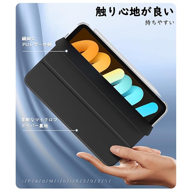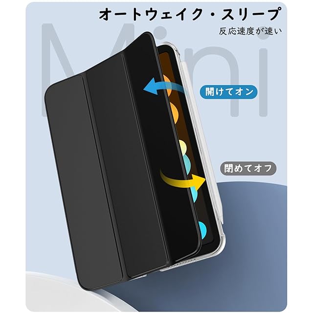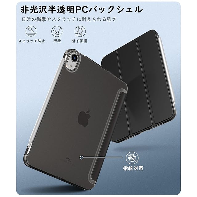 iPad Mini A17 Pro ケース iPad mini7 ケース iPad Mini6 ケース TiMOVO iPad mini 第7/6世代 カバー 8.3インチ 2024/2021 背面半透明 PC製 PUレザー 三つ折り スタンド PencilPro/第2世代ワイヤレス充電に対応 マグネット式開閉 オートスリープ機能 耐久 軽量 薄型 衝撃吸収 ブラック