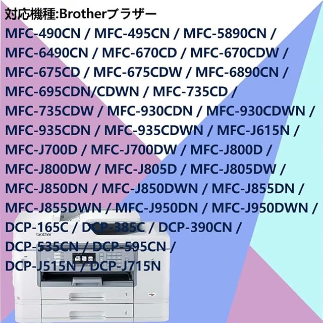 対応機種:MFC-490CN / MFC-495CN / MFC-5890CN / MFC-6490CN / MFC-670CD / MFC-670CDW / MFC-675CD / MFC-675CDW / MFC-6890CN / MFC-695CDN/CDWN / MFC-735CD / MFC-735CDW / MFC-930CDN / MFC-930CDWN / MFC-935CDN / MFC-935CDWN / MFC-J615N / MFC-J700D / MFC-J700DW / MFC-J800D / MFC-J800DW / MFC-J805D / MFC-J805DW / MFC-J850DN / MFC-J850DWN / MFC-J855DN / MFC-J855DWN / MFC-J950DN / MFC-J950DWN / DCP-165C / DCP-385C / DCP-390CN / DCP-535CN / DCP-595CN / DCP-J515N / DCP-J715N