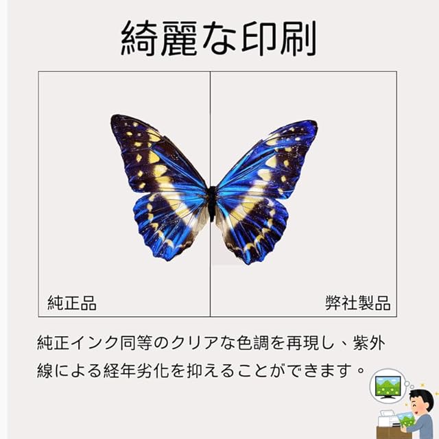 【多様なシーン】家庭、会社、学校など、さまざまなシーンを対応、日常の印刷に適しています。はがき、年賀状、家族写真などにも適しています。流動性が高く、演色性に優れ、耐久性、耐光性、着色力に優れています。 純正インクと同じ印刷品質を実現できます。