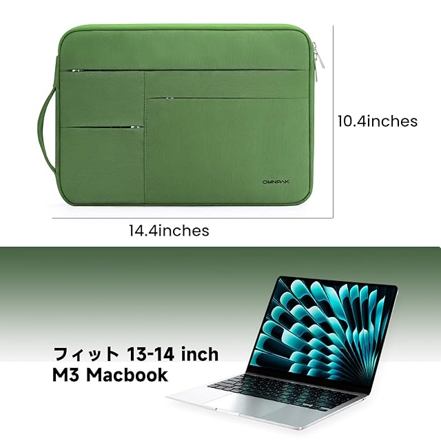Omnpak 360°保護パソコンケース 13-14インチ Macbook Air M4/M3/M2/M1、MacBook Pro M4/M3/M2/M1 Pro/Max PCケース 手提げカバン 撥水表面 耐衝撃性ラップトップバッグ