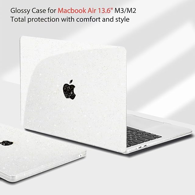 Teryeefi MacBook Air 15 インチ ケース M3 A3114 / M2 A2914 2023 2024発売 対応, ぴかぴか光る 軽量 耐衝擊 保護カバー&JIS日本語 キーボードカバー&液晶保護フィルムマックブックエアー 15インチ カバー用 、キラキラクリア