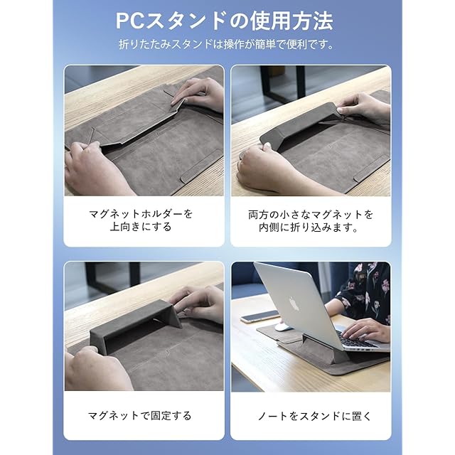【実用性】表地には上質レザーを採用し、快適な肌触りで見た目にも高級感があります。内側は柔らかいスーパーファイバー製で、本体を優しく包み込みます。保護ケースのカバーとケースにはマグネットが2枚ずつ内蔵されており、マグネット式なので開閉がしやすいので、パソコンへのアクセスにも便利です。このノートpcケースは薄くて軽いデザインで、かさばらないので持ち運びも簡単です。