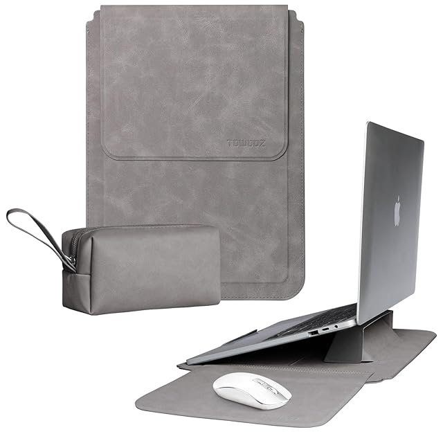 TOWOOZ 3in1 ノートパソコンスリーブ pcスタンドとマウスパッド付き MacBook Air ケース 13-13.6 インチとMacbook Pro 13~13.3 インチに対応 薄型 合成革パソコンスリーブ ノートPCインナーバッグ 耐衝撃 キズ 防止 撥水加工 全面保護 電源収納ポーチ付き 通勤 通学 出張 ビジネス 男女兼用