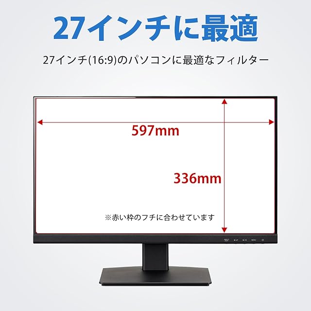 ★プライバシー保護:正面からの視認性を保ちつつ、側面からの覗き見を防ぐことができます。約60度の視野角(左右30度)を越えると、画面が暗く表示されるため、新幹線やカフェで作業をしていても情報の漏洩リスクを回避することができます。 フィルターの寸法:27インチ 16:9 フィルターの寸法:597mm x 336mm