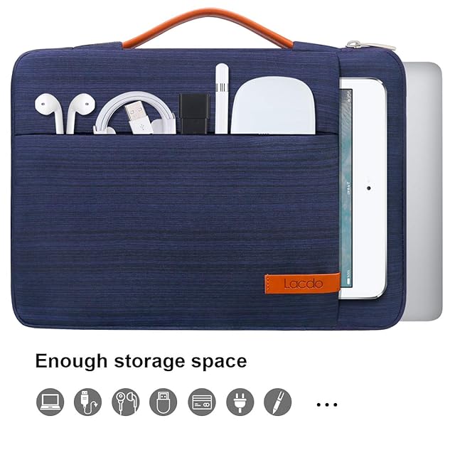 十分な収納スペース: ラップトップ用のメインコンパートメントを除けば、このキャリングスリーブケースバッグはさらに2つのフロントアクセサリーポケットと背面に1つの大きなコンパートメントがあり、小さなiPad、マウス、充電器、電源コード、ケーブル、イヤホン、ペン、ハードドライブ、パワーバンクなどを収納できます: ノートパソコンや電子アクセサリーを素早く取り出せます。Lacdoのプロフェッショナルなラップトップバッグは、あなたのアイテムを安全かつ整然と保ちます、