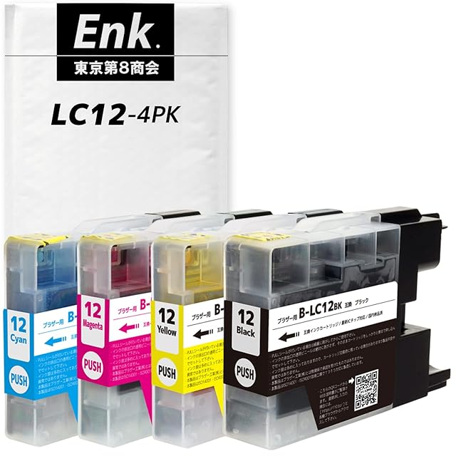 商品名:【Enk】製 LC12-4PK ブラザー用 互換インク 互換インクカートリッジ 残量表示あり 最新ICチップ搭載 国内梱包検品済み QRコード読み取り型説明書導入 LC12 (BK/C/M/Y)【4色セット】