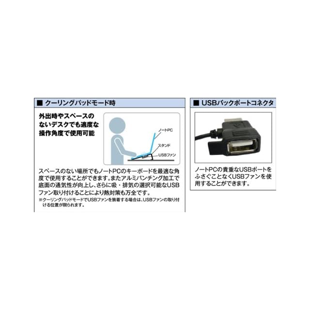 排気と吸気が出来る取り付け自在のUSB 8cmFAN付属