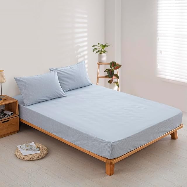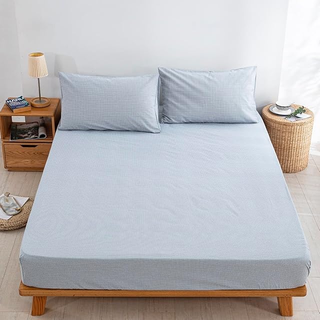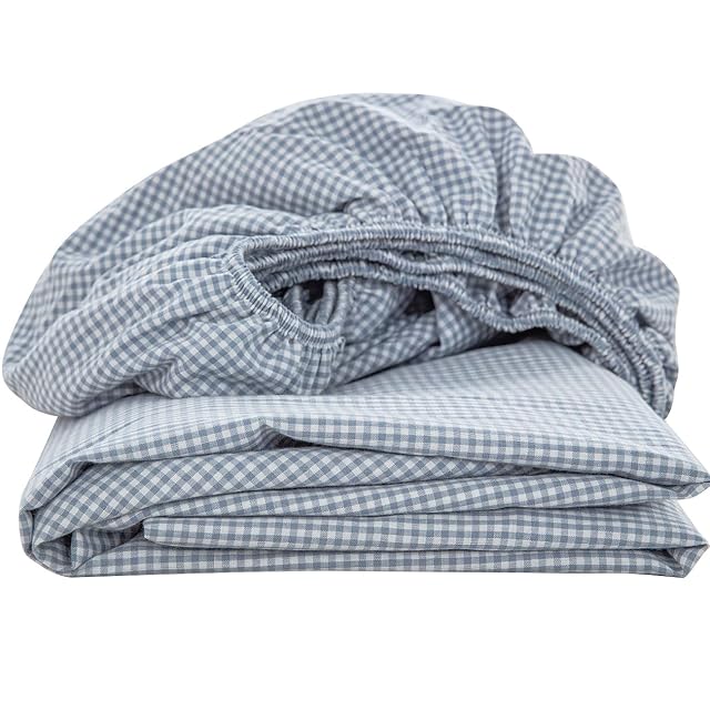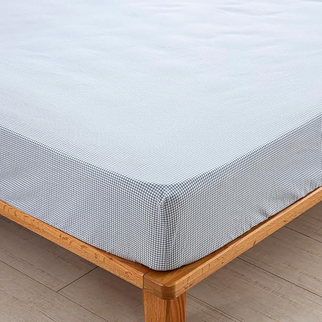 ボックスシーツ ダブル ベッドシーツ オーガニックコットン 洗いざらしの綿100% マチ30㎝ BOXシーツ 防ダニ ギンガムチェック サックス