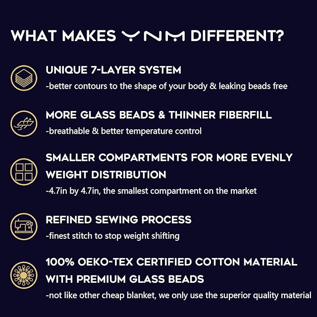 【母親の抱擁力の再現】YnMは、普段不安を感じている大人や子どもだけではなく、抱擁によって一日の疲れを癒し、リラックスしたい方々のために、心を落ち着く効果をもたらすウェイテッド・ブランケットを販売しています。毛布からの重さが体をリラックスさせ、新しい明日への前向きなエネルギーがうまれます。体の力がぬ抜けますと、身体がそれを休息の合図と捉えます。つまり心が穏やかになり、よりいい夜で健康的な生活を送ることが出来るのです。