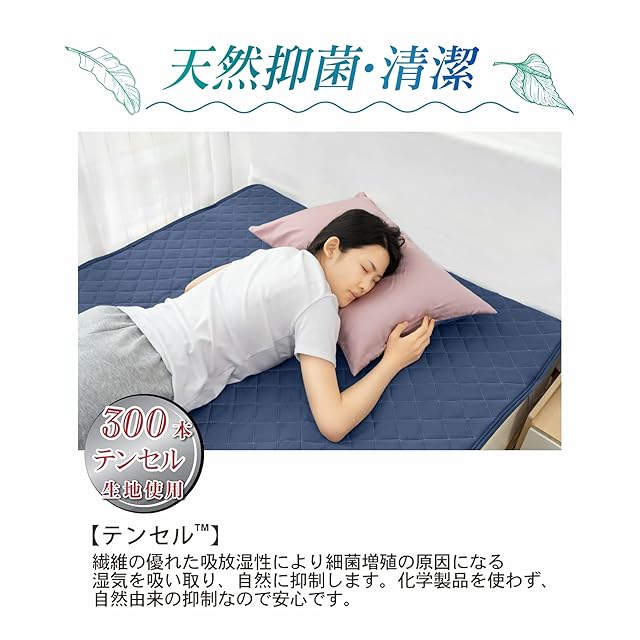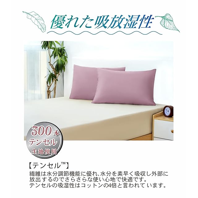 【接触涼感・丸洗い可能】テンセルは独特のフィプリル(極細の繊維)構造を持っているので、コットンよりも優れた温湿度制御性があり、いつもサラサラ。しっとりと柔らかい手触りを楽しめます。ハイクラス感の漂う光沢が、優雅な空間へと誘います。手洗いのみシルクと比較してもテンセルは洗濯機で使用便利。