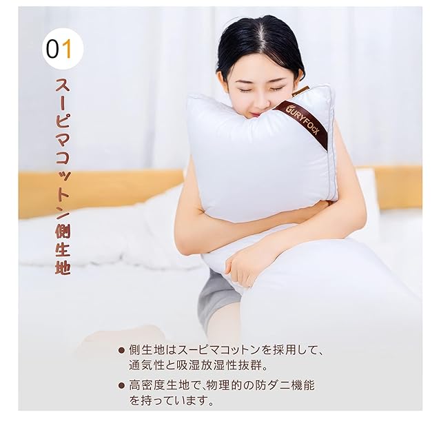 【商品仕様】サイズ:約63x43x16cm 重さ:約1.2kg(中綿量は1.0kg) 側生地:高密度綿100% 詰め物:厳選したポリエステル100%(マイクロファイバー極細繊維)。※本製品は本体のみでカバーは付属しておりません、推薦サイズ: 枕かばー43 63 ; 枕カバー 45 65 ; のびのび枕カバー 43 63