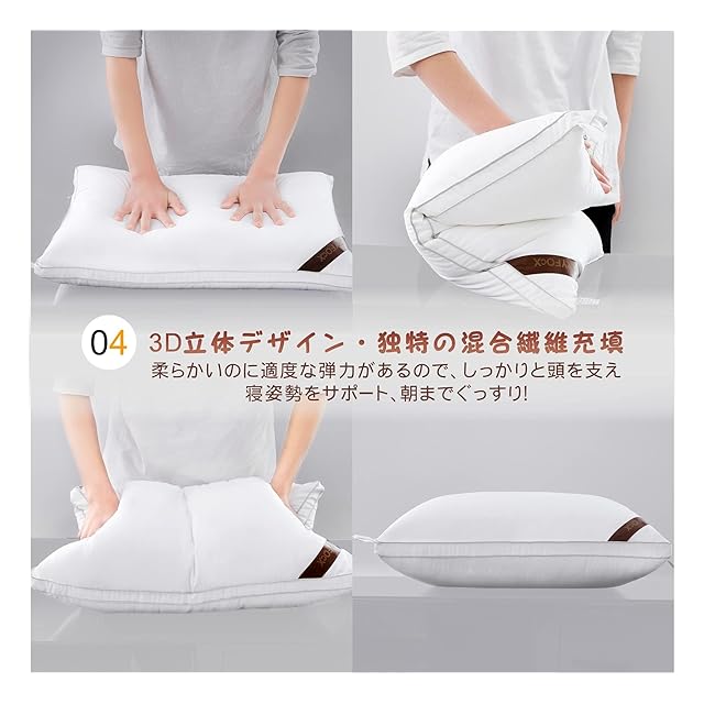 【ふんわり・フィット感】高級な眠りの秘密は、羽毛のような軽さと弾力を実現する独自の二種類の中綿ミックス技術にあります。マイクロ綿の普通枕を超え、特別加工された3D中空綿も使用することで、柔らかなふんわり感とぴったりとしたフィット感が生み出されます。深く沈み込むような快適さと、優れた弾力性が組み合わさり、包み込むような上質な寝心地を追求しました。この枕で、究極の眠りの体験をお楽しみいただけます。