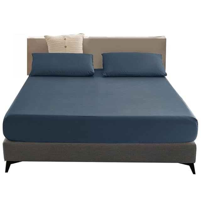 Treeflyheart ボックスシーツ セミダブル・ネイビー 吸水速乾 シーツ ベッドカバー 120x200cmのサイズ 着脱簡単 マチ30cm ポリエステル 抗菌・防臭
