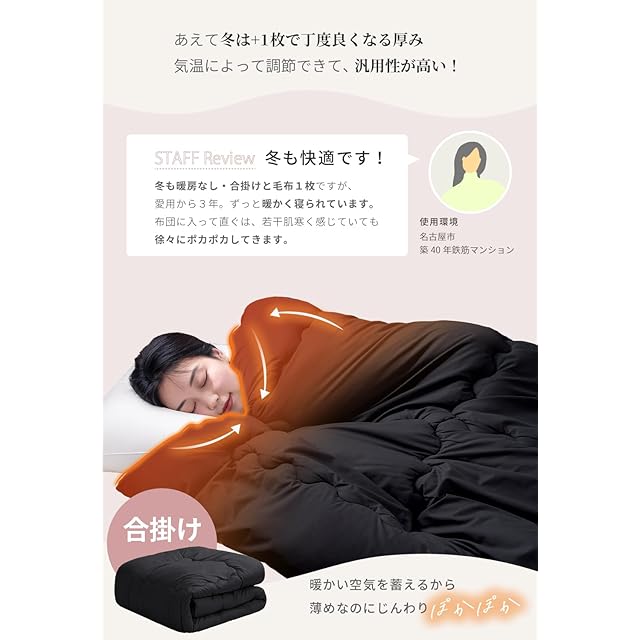 【ふかふかで暖か】蓄熱・保温素材使用で肌掛けなのに暖かい!キルティング加工で、通気・放湿性も高いので、エアコンの効いた夏場のお部屋でも使えます。