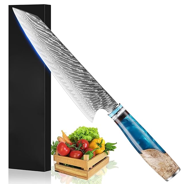 VGTEN 剣型(切付型)牛刀 包丁 刃渡り200mm 切り付け包丁 67層ダマスカス 切り付け牛刀包丁 両刃 握りやすいおしゃれな持ち手 軽量 万能包丁 プロの切れみ 家庭と業務用に適す