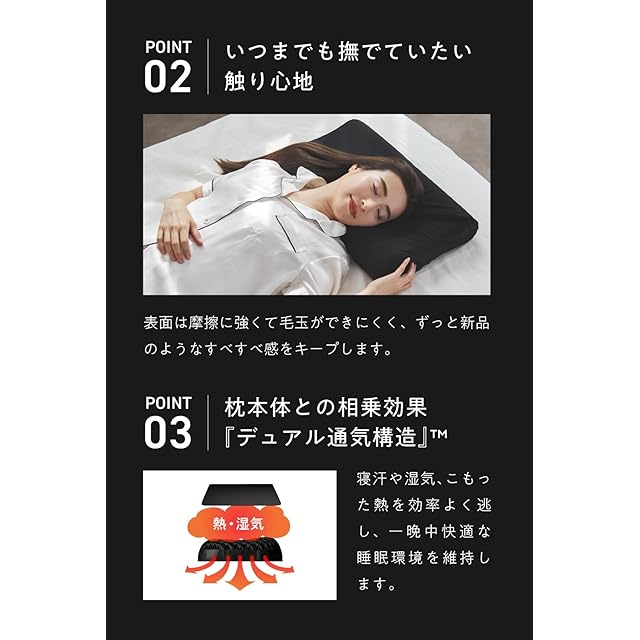 【デュアル通気構造】無数に空いた極小の穴により空気の抜け道を作り出し、頭が蒸れにくく快適な寝心地