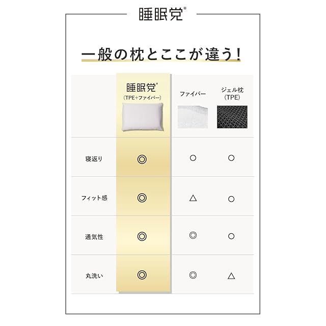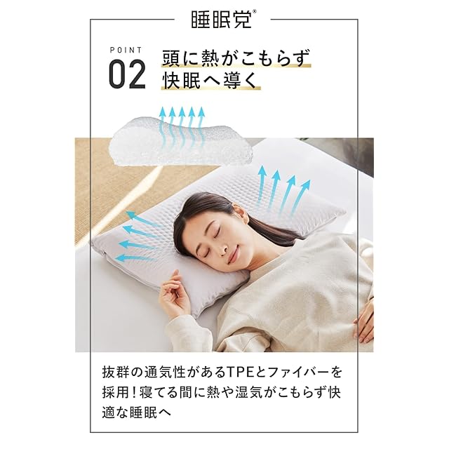 【頭に熱がこもらず快眠へ導く】抜群の通気性があるTPEとファイバー素材を採用!寝てる間に熱や湿気がこもらず快適な睡眠へ
