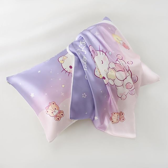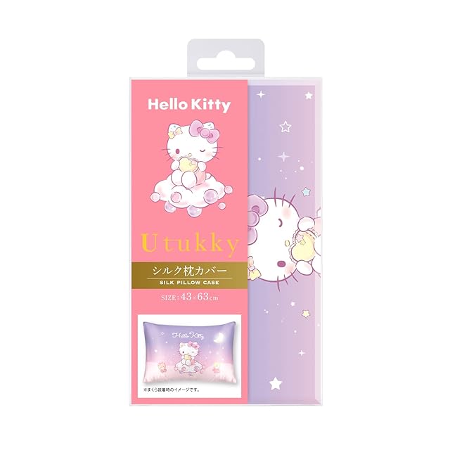 Utukky シルク枕カバー サンリオキャラクターズ ハローキティ 枕カバー 43×63cm 片面100%シルク 封筒式まくらカバー すべすべ 光沢感 洗える 四季適応 可愛い サンリオキャラクターズ 枕カバー 1枚入り