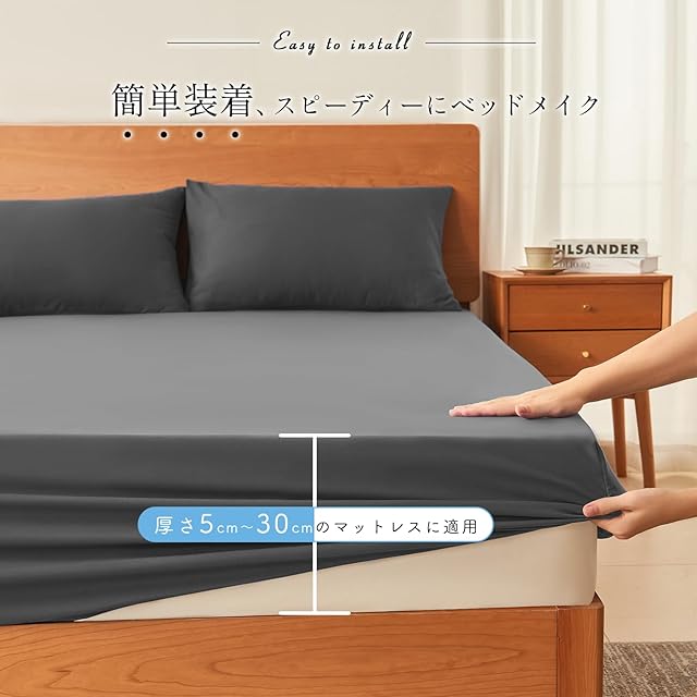【完璧にフィット、動かない安心感】このベッドシーツは四方に弾力性のあるエッジが施され、マットレスにしっかりとフィットし、ズレにくい設計です。どんな動きにも対応し、常に整った状態でご使用いただけます。