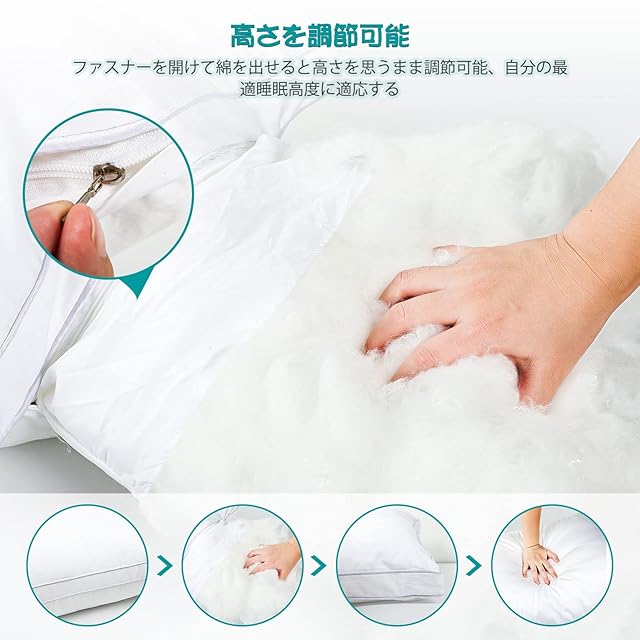【高さ調整】ファスナーから塡充物を入れたり出したり枕の高さを調整できます。