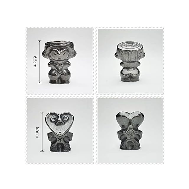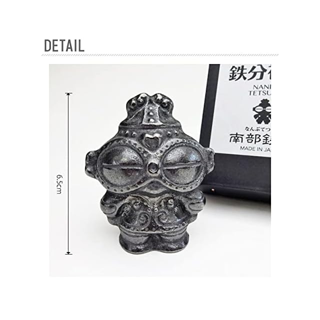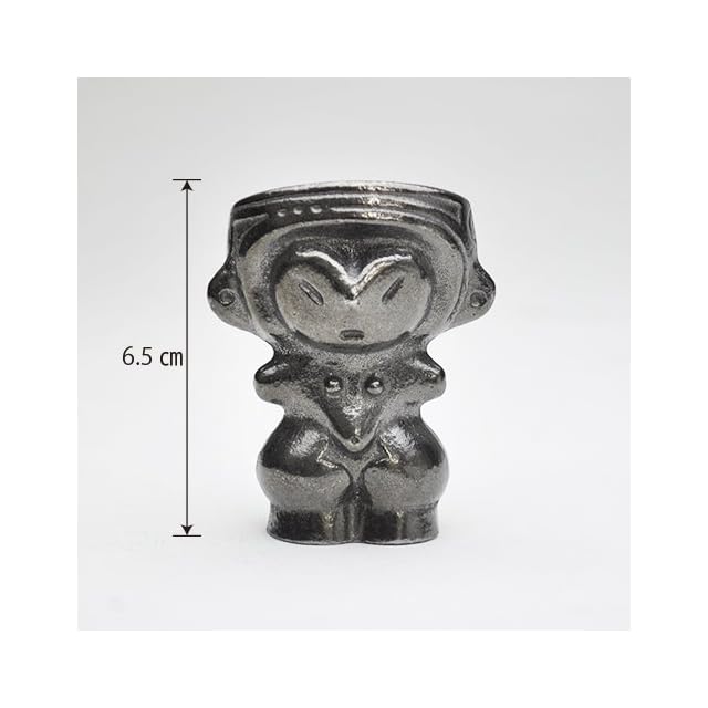 長野県茅野市の棚畑遺跡から出土し、国宝に指定されている土偶、縄文のビーナス※がモチーフになっています。 溶出する鉄分を利用し、やかんや鍋に入れて鉄分補給のほか、貝の砂出し、黒豆やなす漬けの色だしなどに古釘の代用としてお使い頂けます。 安定して直立しますので、置物やオーナメントとしてもお楽しみ頂けます。 ※妊娠した女性の様子を表していて、安産と子孫繁栄の祈りが込められているといわれています。