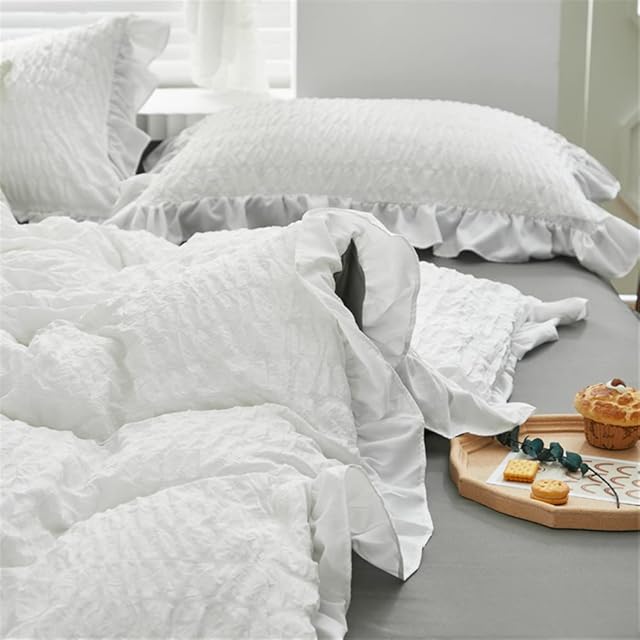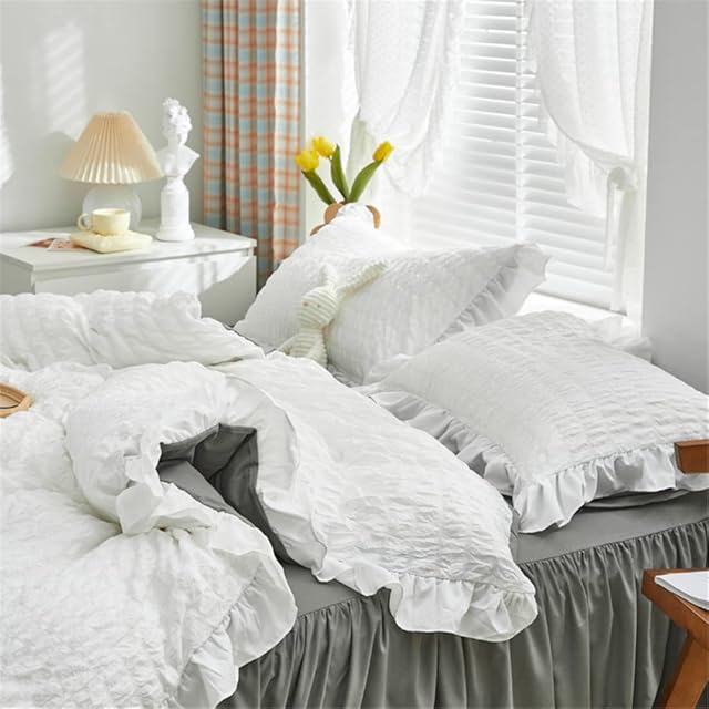 LAIKOR 寝具カバーセット ふとんカバー 掛け布団カバー 敷き布団カバー ベッドスカート オールシーズン シンプル 全綿100% コットン 洗える 高密度 活性プリント シングル 洗える ベット用セット 寝具カバー 活性プリント おしゃれ ズレ防止 水洗い加工 レース 北欧風 韓国プリンセス風 四季用 通年寝具 柔らかい 快適 可愛い シングル セミダブル ダブル (セミダブル, ホワイト)