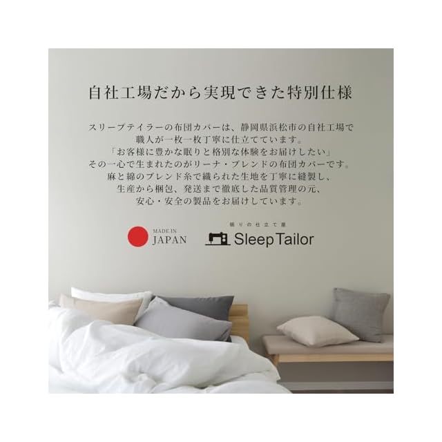 弊社が製造・販売している寝具、布団カバーは、 日本製による高品質にこだわり、自社工場による国内生産を行っております。 国内縫製だから丈夫で上質です。軽量で高密度、手触りの良い天然素材を多く取り揃えております お肌に優しいアトピー協会推薦商品やエコテックス認証商品もご用意し、 敏感なお肌の方にも安心、安全で健やかな眠りをお届けします。 シングルサイズやダブルサイズはもちろん、近年人気を集めているセミダブルサイズや、 クイーンサイズ、キングサイズまで、幅広いサイズを取り揃えております。 新生活のスタートにおすすめの3点セットや4点セットもご用意しております。 掛け布団カバー、敷き布団カバー(和式)、ボックスシーツ(洋式)、フィットシーツ、フラットシーツ、 枕カバー(ピローケース)などのカバーリングラインナップに加え、ムートンラグマットや ムートンスリッパ、ステテコ・暖かい(あったか)マイクロファイバー布団カバーもお取り扱いしております。父の日、母の日、敬老の日、 クリスマス、新築祝い、結婚祝いなどのギフトやプレゼントにも最適です。