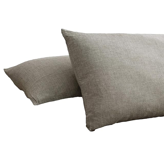 枕カバー2枚組 オーガニックコットン洗いざらしの綿100% 50x70cm ピロケース 防ダニ 抗菌 防臭 グレー