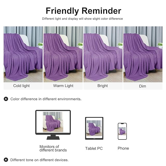 uxcell 毛布 掛け毛布 ブランケット フランネル マイクロファイバー ふんわり あったか 柔軟 軽量 ふわふわ ベッド ソファ 洗濯可能 静電防止 防臭 ダークパープル 200*230cm