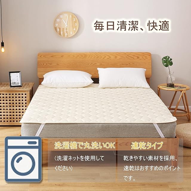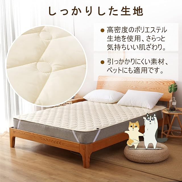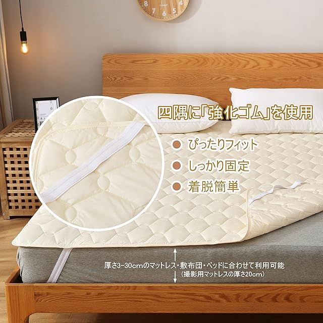 【使いやすさ】季節を選ばないオールシーズン使用可能です。表裏とも同じなピーチスキン加工素材で、リバーシブル利用可能になります。四隅に強化ゴムバンド付き、脱着簡単、一人でも入り替え可能です。ズレ防止。厚み1-30cmのマットレス/敷布団/パッドに対応できます。