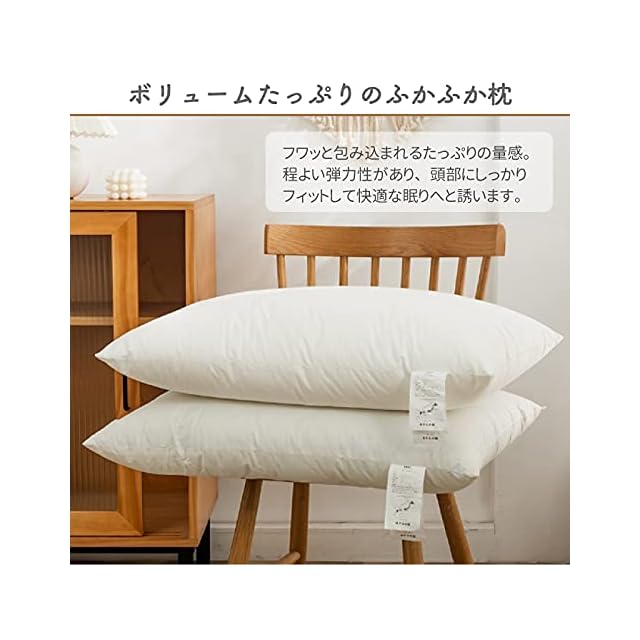 【羽毛じゃないけど羽毛のような寝心地】 羽毛が入った枕のようにふわふわの寝心地。 柔らかいのに弾力があるのでしっかりと頭を支えて寝る姿勢をサポートします。 ポリエステル素材なので羽毛枕特有の獣のにおいやアレルギーといった心配もなし。