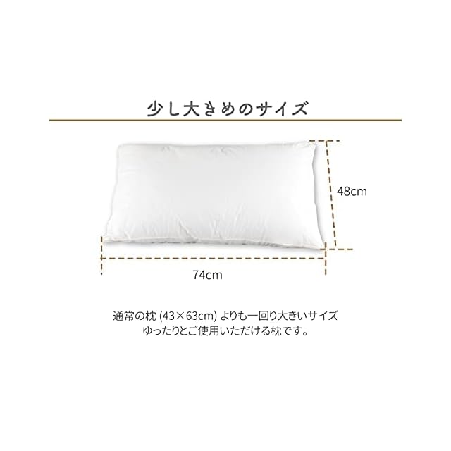 【少し大きめサイズ】 通常の枕(43×63cm)よりも一回り大きいサイズなのでゆったりとご使用いただける枕です。