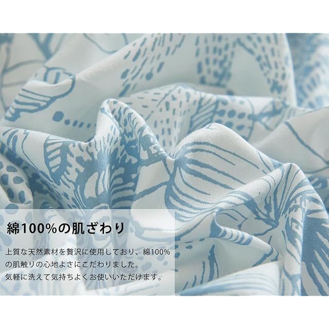 掛けふとんカバー キング 230x210cm 綿100% リバーシブル 掛けカバー エレガント リーフ柄 おしゃれ 速乾 通気 単品売り 防ダニ