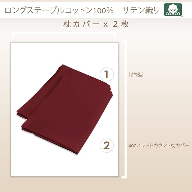 涼しくて通気性があり、なめらか:高品質のロングステープル(長繊維)コーマ綿を100%使用し、サテン織りで仕上げた400スレッドカウントの枕カバー(標準サイズ)です。糸を圧縮する製法と最小限の人工加工により、汗や湿気を逃がす優れた通気性を実現。軽やかな肌触りで寝苦しさを軽減しながら、まるでホテルのような上品さも兼ね備えています。