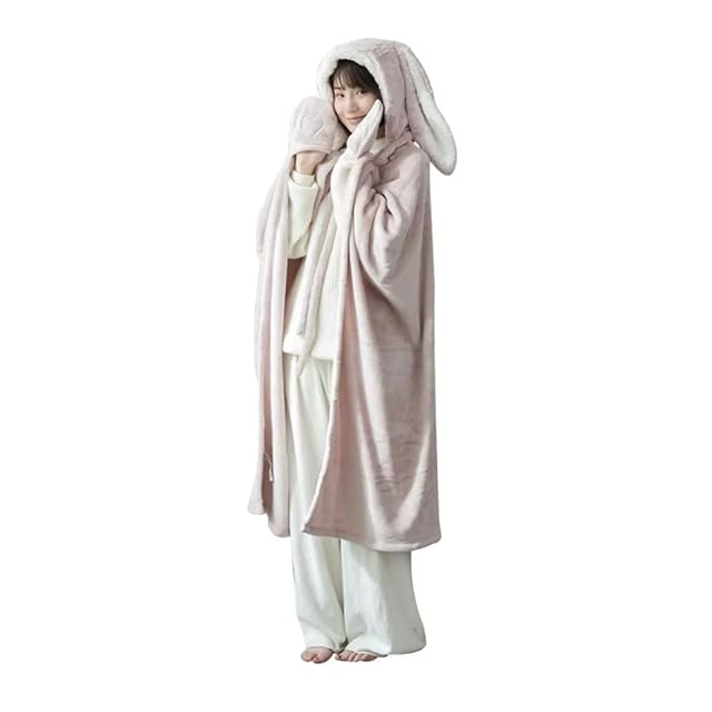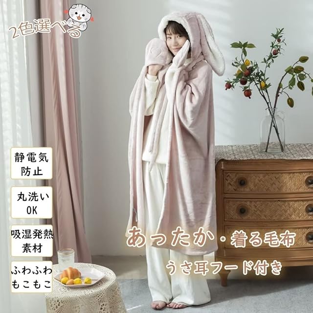 [YKFN] 着る毛布 レディース ルームウエア 可愛い もこもこ 暖かい 着るブランケット メンズ ブランケット 大判 フード付き ふわふわ あったかい 大きいサイズ うさ耳 おしゃれ 毛布 冬用 寝間着 着る毛布 部屋着 厚手 大きい 男性 春 秋 冬 防寒 保温 丸洗い グレー 130*120cm