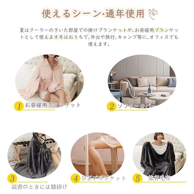 【使えるシーン·通年使用】ご自宅のリビングや仕事場に、車に乗せてお出かけのお供に、ベビーカーやお子様に、犬や猫のペットの寒さ対策に、様々な場所でご利用いただけます。カフェや美容院などのお客様用としてまとめ買いされる方にもお勧めです。お昼寝用ブランケットとして使えます冬はおうちで、外出や旅行、キャンプ等に、オフィスでも使えます。