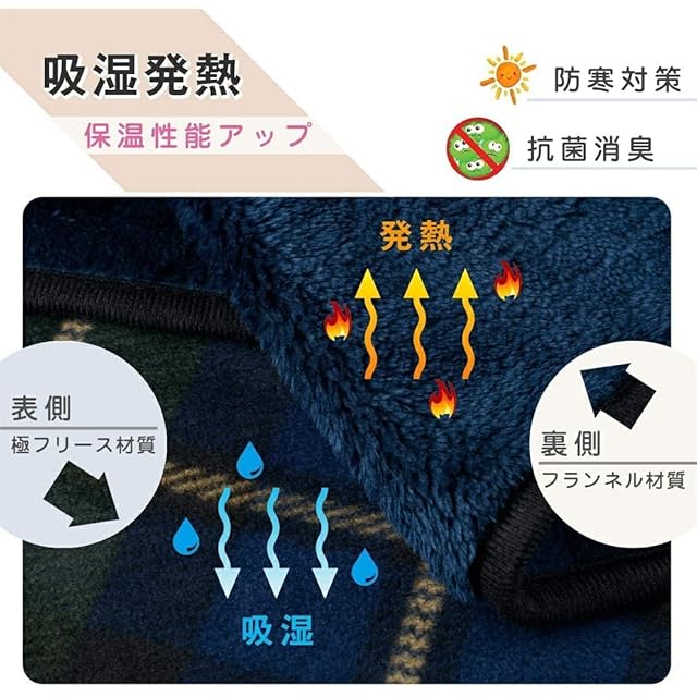 【機能性】吸湿保温、静電気防止、ニキビダニ防止、抗菌防臭を加工して、毎日安心してお使いいただけます。暖かいのに毛布より軽くて、持ち運びやお出かけにも便利です。
