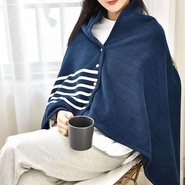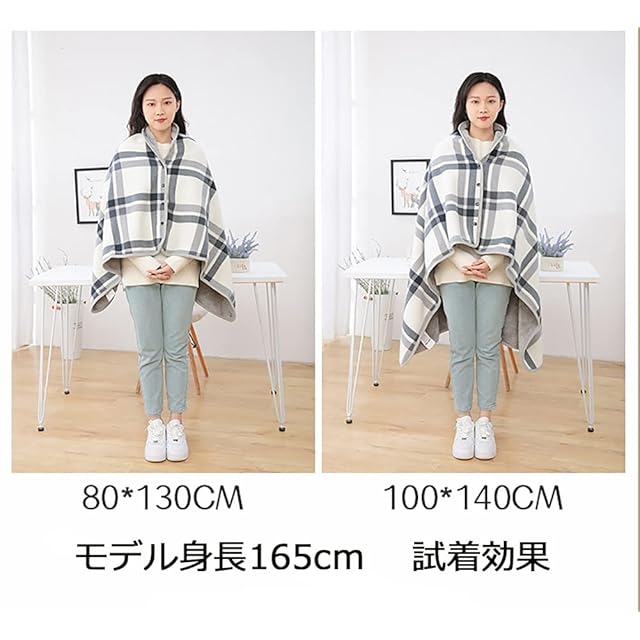 [LeafIn] ひざ掛け ブランケット ハーフケット 大判 4way 着る毛布 肩掛け ボタン付き 厚手 防寒対策 あったか チェック柄 おしゃれ 吸湿保温 抗菌加工 静電気防止 洗濯可能 手触り 暖かい ZH19(ネイビー, L)