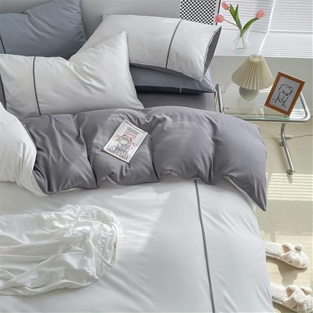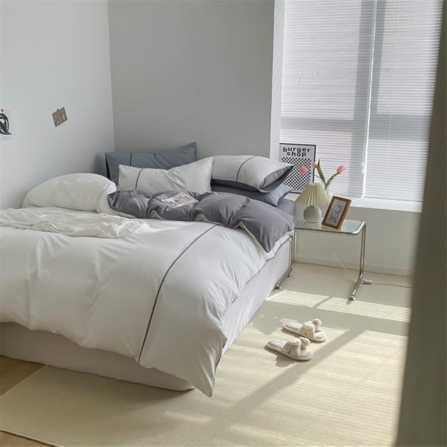LAIKOR 寝具カバーセット ふとんカバー 掛け布団カバー 敷き布団カバー ボックスシーツ オールシーズン シンプル 洗える 高密度 活性プリント シングル 洗える ベット用セット 寝具カバー 活性プリント おしゃれ ズレ防止 水洗い加工 レース 北欧風 韓国プリンセス風 四季用 通年寝具 柔らかい 快適 可愛い シングル セミダブル ダブル (セミダブル, ホワイト)