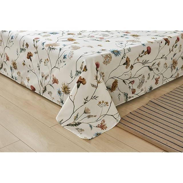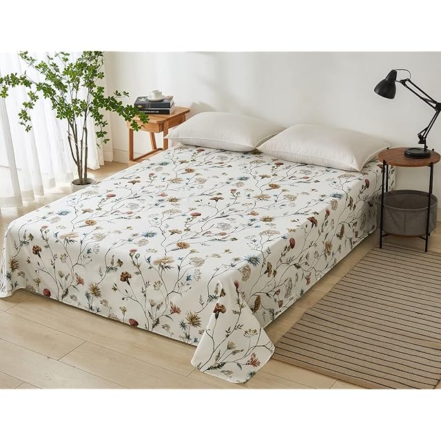 フラットシーツ キング 250x290cm 綿100% 敷きシーツ ベッドシーツ マットレスカバー アッパーシーツ 防ダニ 抗菌 花と葉の柄