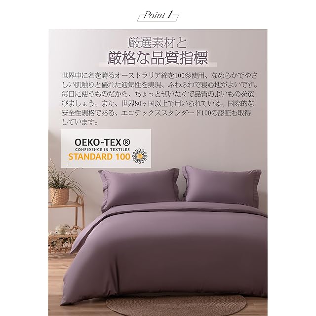 【厳選素材と厳格な品質指標】世界中に名を誇るオーストラリア綿を100%使用、なめらかでやさしい肌触りと優れた通気性を実現、ふわふわで寝心地がよいです。毎日に使うものだから、ちょっとぜいたくで品質のよいものを選びましょう。国際的な安全基準OEKO-TEX認証も取得済み。