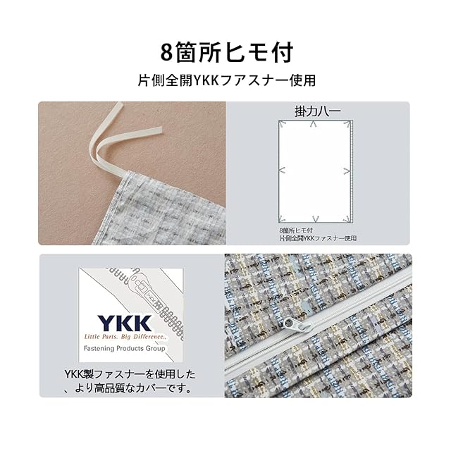 【仕様】YKKファスナー使用,布団留めヒモ8ヶ所付き。