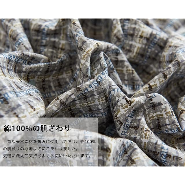 【綿100%の肌ざわり】上質な天然素材を贅沢に使用しており、綿100%の肌触りの心地よさにこだわりました。綿素材は吸湿性・放湿性に優れているため、寝ている間に汗をしっかり吸収し、フレにくく快適な環境を保ちます。