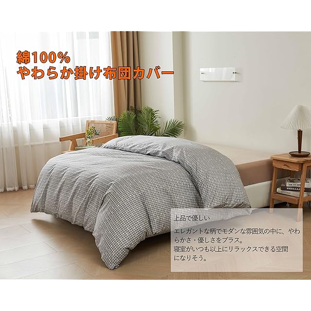 掛けふとんカバー キング 230x210cm 綿100% リバーシブル 掛けカバー エレガント チェック柄 おしゃれ 速乾 通気 単品売り 防ダニ